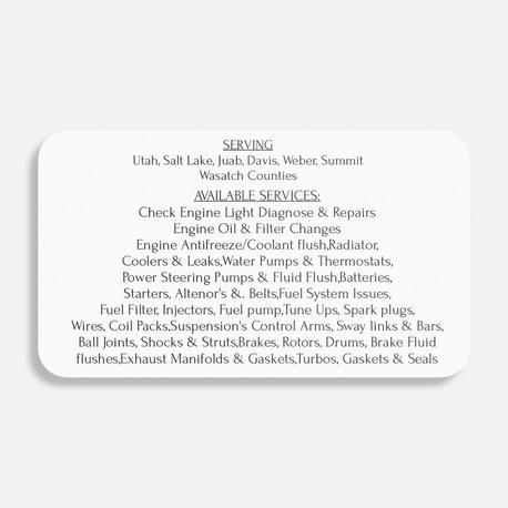 Hi Welcome to C & T Auto Mechanic Cars & Trucks where we offer Convenience and Better Prices on all auto repairs and maintenance services, Domestic & Foreign Cars and Trucks. 28 Plus Years Experience, I prefer to purchase and use all new parts from local part vendors. I also repair small engines such as Motorcycles, Lawn Mowers, Snowblower's, Utility Trailers, Ect. Please call or text for appointment and price quote at 801-541-3106