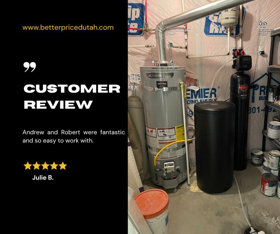 My Name is Andrew and I've been a plumber for over 25 years. I grew up in the Salt Lake Valley and I absolutely can say that I love this area and I'm here to stay. Experienced in residential plumbing service repairs and replacements. I worked for the bigger companies and I noticed that their pricing was getting out of control. I no longer felt comfortable working for these types of places so I started Better Priced Water Heaters and Water Softeners with a goal to give a better service with a better price! We will never be the cheapest in town nor will we be the most expensive, but you can always count on a drug free, insured and licensed professional to give you upfront fair prices and options for your project. No work will ever begin without your approval first. Our team will always strive to give you a 5 star experience and we won't leave until you're completely happy with our service. CHOOSE BETTER AND CALL OR TEXT TODAY!